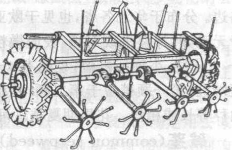 图2 间苗过程示意图 光电控制间苗机 其传感器有一个光敏晶体管和位于苗行另一侧瞄准光敏晶体管的光源,用以判别苗株大小。苗株壮时,光敏晶体管接受的光就少,同时发出信号,电子系统就把壮苗株保留下来,把其余的苗除掉。 为了使间苗后的株距能符合不同的农艺要求,除采用不同长度的间苗刀外,还用定时装置或延时开关来控制除苗部件的工作时间。 间苗机plant thinner清除作物行内多余的幼苗而保证所需植株密度的机械。间苗机有随机式和选择式两类。前者沿作物行按规定的距离,由动力驱动旋转或摆动的刀片,将所有幼苗铲除,然后跨越一段距离保留幼苗,如此间歇地工作。这种机具不加选择地铲除弱苗和壮苗,有时跨越的全部长度内根本没有苗,有时除掉的全部是壮苗,所以作业后幼苗沿行分布的均匀性不理想。后者多为电子选择式,机器上安装电子传感器,用来探测出一定距离需要留下和铲除的幼苗,传感器触发电路或液压起作用,驱动刀片或药剂喷洒器,除保留选出的幼苗外,把其余幼苗全部除掉。为获得间苗均匀一致的效果,要求机具有精确的仿形导向,对苗带的地面和断面形状以及苗行内作物与杂草的多少、高低也有严格的要求。