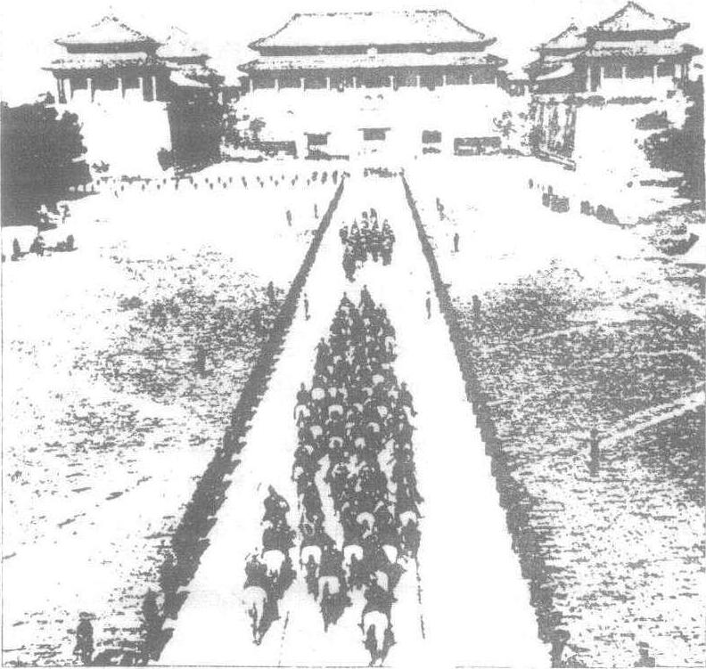 八国联军长驱直入紫禁城 义和团运动1900年中国人民反帝爱国运动。义和团的前身是义和拳,原是山东、河南等地的民间反清秘密结社,属白莲教支派。甲午战争后,随着帝国主义侵略的加深,民族危机空前严重,帝国主义和中华民族的矛盾日益尖锐化,遂由秘密结社转变为公开的反帝斗争组织。1899年改称义和团,提出“扶清灭洋”口号,毁铁路、焚教堂、逐教士,势渐强盛,由山东伸展到华北、东北诸省。为镇压中国人民的反帝爱国运动,1900年6月,俄、英、法、德、意、奥、日、美八国组成侵略联军,由天津进犯北京。遭到义和团的截击。17日侵略军攻占大沽炮台,扩大侵略战争。21日清政府以宣战为名,假列强屠刀屠杀义和团。义和团虽在京、津等地英勇奋战,多次打败侵略联军,但终因众寡悬殊而被中外反动势力联合绞杀了。1901年9月清政府与11国签订卖国的《辛丑条约》,义和团余部认识到清政府完全堕落为“洋人的朝廷”,遂打起“扫清灭洋”旗帜,继续战斗。义和团运动沉重打击了帝国主义及其走狗清政府,促进了人民的觉醒,加速了清王朝的崩溃。 义和团运动1900年以农民为主体的中国人民的反帝爱国运动。义和团源于义和拳、梅花拳和大刀会等民间秘密会社,长期活动在山东、直隶等地。基本群众是农民和小手工业者。基本单位是坛,又叫坛口、坛场、拳厂等,以某一城镇或自然村为基点,各自形成独立的拳坛单位。甲午战争后,帝国主义列强掀起瓜分中国的狂潮,中国人民奋起反抗外来侵略势力,义和拳等秘密会社乃逐渐汇成反帝爱国的洪流。1899年义和拳等组织改称义和团。山东义和团开始攻击外国传教士和不法教民,提出 “扶清灭洋” 的口号。1899年12月,清政府在帝国主义的胁迫下,派袁世凯到山东镇压义和团。山东义和团被迫转移,一部分与直隶义和团汇合。1900年春,义和团大批进入华北及北京、天津,声势浩大。为了镇压中国人民的反帝运动,1900年,英、美、德、法、俄、日、意、奥组成八国联军进攻中国。6月10日,英国海军中将西摩尔率联军2000多人,从天津出发,进犯北京,在廊坊遭到义和团和清军的严重打击,被迫退回天津。后天津义和团发动进攻紫竹林租界和老龙头车站的战斗;北京义和团与清军共同围攻东交民巷使馆区和西什库教堂,但由于清政府的破坏而失败。天津、北京相继陷落后,义和团遭到了八国联军的残酷镇压。1901年9月,清政府在帝国主义威逼下签订空前屈辱的《辛丑条约》。义和团余部为反对《辛丑条约》,举起“扫清灭洋”的旗帜,继续战斗。义和团运动打击了帝国主义瓜分中国的阴谋,进一步暴露了清政府的腐败,促进了资产阶级民主革命的兴起。义和团运动的失败,证明旧式的农民革命运动已不能适应时代的需要。 义和团运动清末反帝爱国运动。1899年10月,朱红灯等人在山东平原县揭竿而起。12月,山东、直隶连成一片。袁世凯率军镇压。1900年1月清政府变镇压为安抚,义和团进入京津地区。列强联军2000多人于6月10日进逼北京,13日在廊坊被义和团阻截,至26日才逃回天津,死伤300人。6月21日,清政府宣战,并进攻使馆和教堂。7月9日,清将聂士成战死。7月14日联军占天津,8月14日进北京。慈禧出逃,并命清军剿灭义和团。 |
