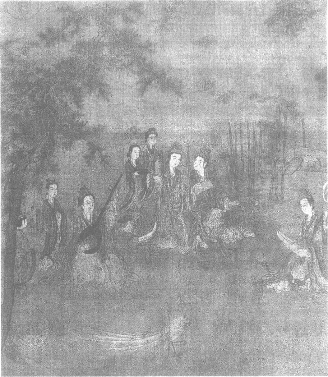 | 释义 | 阮郜《阆苑仙女图》活跃在后梁的画家阮郜,生卒不详,约活动于五代末北宋初。入宋后为“太庙斋郎”。工写人物,尤善仕女。能表现出她们的纤浓淑婉之态。今存《阆苑仙女图》,绢本,设色画。纵42.7厘米,横177.2厘米。现藏北京故宫博物院。描写众仙女在阆苑娱乐的情景。其中有凌空驾云者,有闲步岸边者,有展卷诵读者,有执笔欲书者,另有拨弄三弦琴弹奏者,乘龙驾鸾飘飘欲降者。地面苍松翠柏挺然而立,茂竹修篁片片成林。岸边植有珊瑚之类,又有青鸾对对闲行,一派仙道气氛。画风工致,色彩艳丽。阆苑,在今四川境内,传说中的仙家圣地,据说女子花神降临时,能开非时花,鹤林寺的杜鹃花高一丈多,三女子化装神游其下。《续仙传》对此有详述。