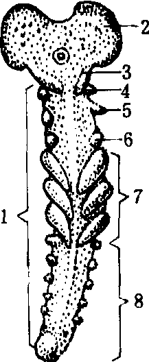 (仿Snodgrass) 有翅亚纲成虫除外生殖器及尾须外,一般无附肢,但在幼虫期有行动用的附肢,如蜉蝣目、广翅目、脉翅目、鞘翅目、鳞翅目、长翅目、膜翅目等的幼虫。鳞翅目幼虫通常有5对腹足,着生在第三至六和第十腹节上,第十腹节的腹足又称臀足。腹足筒状,末端有能伸缩的泡,称跗掌或趾。跗掌末端有成排的趾钩,它的数目和排列形状是幼虫分类常用的特征。 附肢appedixes附属于动物躯干部成对的器官。具有运动、呼吸、捕食、咀嚼、感觉等功能。如脊椎动物(除圆口纲外)具附肢两对,鱼类为胸鳍、腹鳍;两栖类、爬行类、鸟类、哺乳类为前肢、后肢。无脊椎动物常有附肢多对,如多毛类的疣足;节肢动物附肢的形态、功能多样化,常特化成口器、触角、胸足、腹足等。 |