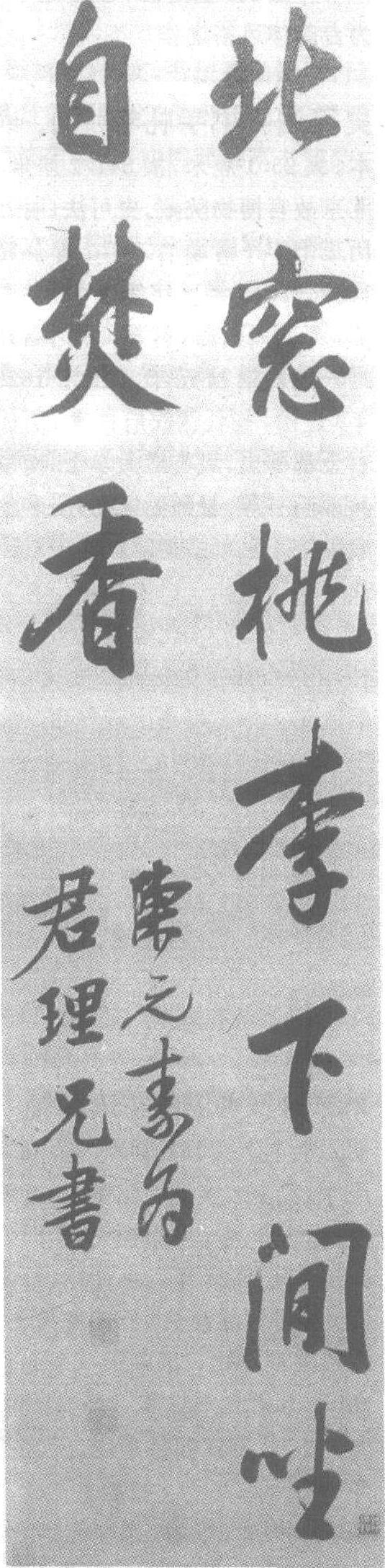 | 释义 | 陈元素行书五言联明。纸本。纵125厘米,横30厘米。北京故宫博物院藏。陈元素(公元16世纪—17世纪前期),字古白,自号处廓先生,私谥贞文先生,长洲(今苏州)人。万历三十四年(公元1606年)应乡试不第。少有才名。工诗文,善画兰竹,秀美而沉厚,亦工山水,尤善书法,楷书法欧阳询,草书宗二王。此对联行书书五言诗句,笔法沉厚而秀润,兼融欧阳询和二王书法的艺术特点。