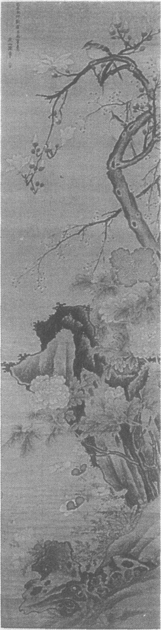 | 释义 | 陈卓玉堂富贵图轴清。陈卓绘。纸本金笺设色。纵248厘米,横56厘米。山东省青岛市博物馆藏。陈卓(公元1634—?年),字中立,晚号纯痴老人。北京人,久居金陵(今江苏南京),善画山水,与刘度风格相近。工花鸟,精致而设色浓艳。此作品以池塘一角构图,塘中清波漪澜荡漾,岸边怪石嶙峋,一棵玉兰正逢花期,花朵轻盈优雅,两鹊栖于枝头,丰满而乖巧。几枝海棠斜刺入画,色泽柔和清淡。奇石旁的牡丹,花繁叶茂,红色和粉白的大花朵显得富贵娇美。石缝中钻出小草野花,清新自然,别具风味。作者在绘画中使用了多种技法,玉兰、鸟鹊以双勾为之;海棠花以没骨法点绘;以晕染法作小草野花;奇石则使用了皴笔,使其具有光照阴阳面。此画笔法工细入微而不呆板,设色浓淡兼顾,春天气息扑面而来。款署:“己未秋仲拟崔子西笔意。”钤〈燕山陈卓〉、〈上慕〉二方朱文印。