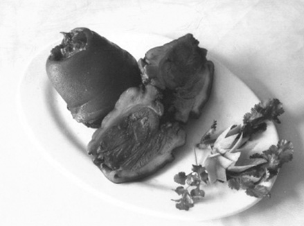 | 释义 | 陈家酱汁肘子chenjiɑ jiɑnɡzhi zhouzi地方风味肉食。国家二级厨师陈健民于1993年始创,故名。流行于彬县等地。制法:先将生猪肘洗净去骨,放入锅内用旺火急煮40分钟,撇去浮沫,捞出洗净后备用。再将肘子放进老汤锅内,加入酱油、大香、小香、桂皮、花椒、丁香等十多味佐料,先用急火烧开,改用微火闷煮三小时出锅即成。2003年4月,在“中国烹饪王国游”西安咸阳美食旅游周活动中,获西安咸阳旅游名品称号。
