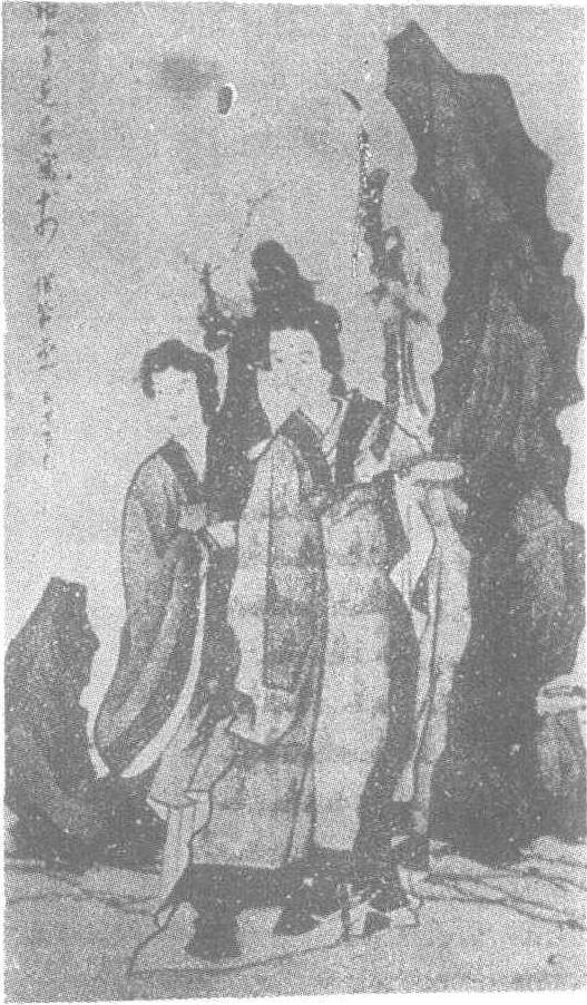 | 释义 | 陈洪绶女仙图轴明。陈洪绶绘。绢本设色。纵173.2厘米,横97.1厘米。北京故宫博物院藏。陈洪绶(公元1598—1652年),字章侯,号老莲,明亡,出家云门寺为僧绘改号悔迟、悔僧、弗迟、云门僧、九品莲台主者等,浙江诸暨人。从小喜欢绘画,四岁时就能在墙上画八、九尺高的关羽像。早年师承蓝瑛,深得蓝瑛赏识。他工人物、花鸟、山水。尤其人物,造型夸张,线条细劲,设色淡雅,着意于传神,兼得李公麟、赵孟頫的白描,特别是吴道子的设色之法。所画人物颇受时人推崇,与崔子忠一起被誉为“南陈北崔”。他的人物画最大特征是线条的运用,笔调有二,前期线条多略纵粗壮,方折有力,后期线条清圆细劲,凝练沉着。画中设色常由其弟子严湛来完成。他曾为《西厢记》、《九歌》等文学名著作插图,也画过《水浒叶子》。所作花鸟、山水等构图新奇,色彩浓丽,富于装饰趣味。清末的“四任”(任熊、任薰、任颐、任预)继承并发展了他的画风,至今仍有少其后尘者。陈洪绶是个有民族气节的画家,明亡后,清兵强制他作画时,他宁死不屈,后遁入空门。曾在绍兴、杭州卖画为生。此幅为其中早年之作。一块秀逸、峭拔的湖石旁,女仙手拄挂着宝葫芦的仙杖,悄然而立,凝神俯视前方。其后跟随的侍女,手捧高大的花瓶,瓶中插着绽开的山茶和梅花。二女仙眉清目秀,风姿绰约。画的左边自识:“溪山老莲洪绶写于惜华堂。严湛设色。”严湛,字水子,山阴人,陈洪绶弟子,经常为陈洪绶的画设色。此图即为师生合作。图中仙女衣纹线条方折有力,衣上花纹工细匀整,粗中有细,富于变化,具有作者早期画的明显特征。此图有伪本,但真迹亦不止一幅。