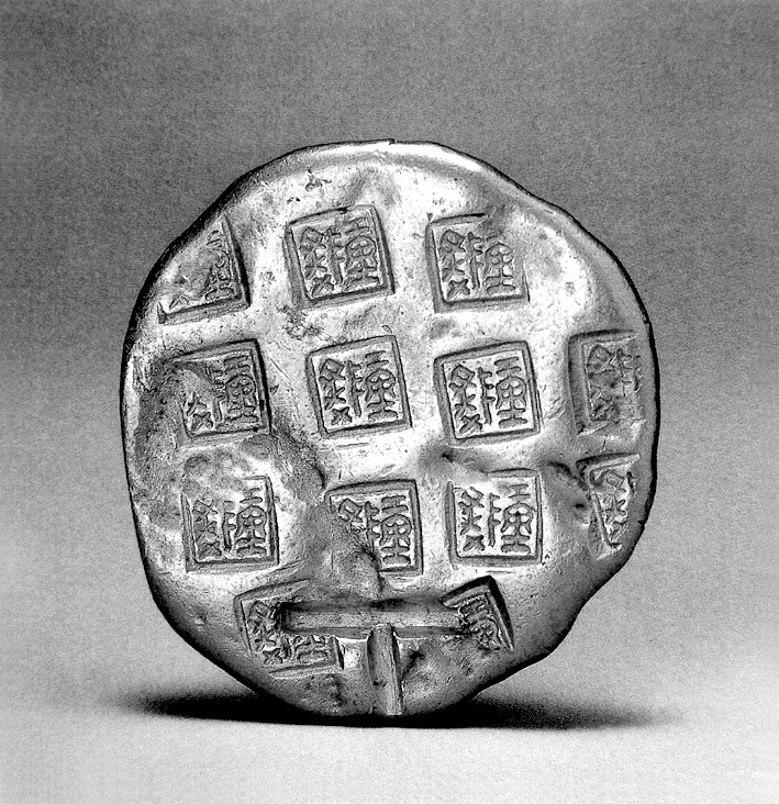 | 释义 | 陈爰金版chenyuanjin ban战国金币。亦称陈爯金钣。1972年咸阳市窑店公社(今渭城区窑店镇)路家坡村北约1公里处出土。共8块,其中圆饼形3块,直径6.1厘米~6.6厘米,厚0.5厘米,重249克~250克。瓦形或不规则形5块,瓦形长6.4厘米,宽5厘米;不规则形长7厘米,宽6.3厘米,重230克~265克。含金量均在95%~96%之间。每块金版上戳有10个~17个方形印记,印记为楚国文字“陈爰”。“陈爰”是战国时楚国爰金之一。“陈”为楚国大城,在今河南省淮阳市。此金版存世极少,外地未发现完整者。现藏咸阳博物馆。