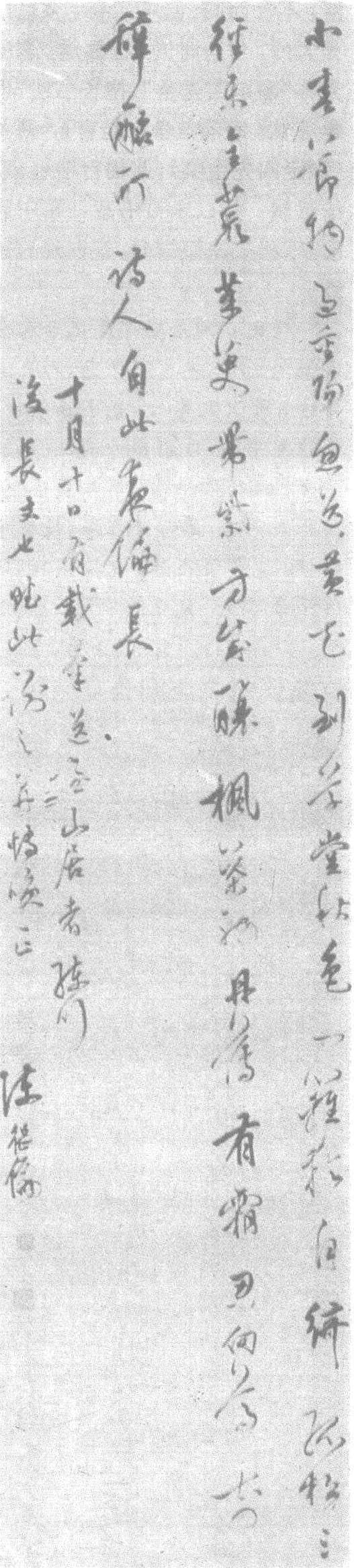 | 释义 | 陈继儒行书七言律诗轴明。纸本。纵237.8厘米,横54厘米。北京故宫博物院藏。陈继儒(明嘉靖三十七年—明崇祯十二年,即公元1558—1639年),字仲醇,号眉公,又号糜公,华亭(今上海市松江)人。诸生。隐居昆山之阳,后筑室东佘山,杜门著述。颖悟博学,工诗文,短翰小词极有风致。擅画水墨梅花、水仙、奇石等。书师苏、米。著有《眉公秘笈》、《妮古录》、《皇明书画史》等。此幅作品,行书七律一首,书法出入苏轼、米芾之间,自然流畅,秀雅疏朗,富有韵致,体现了文人书法的艺术特点。