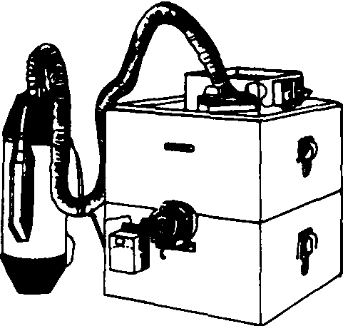 ❷以交流电为热源的轮式除螨器。由不锈钢制作的长方形机身,下面有轮子,可在蜂场里推动。外形尺寸为55×45×25厘米,重12千克。采用交流电,电压为220伏,功率为1300瓦。靠电能形成治螨药物的热气雾,由蛇形管与扁口喷咀将气雾喷出。平均耗药量10毫升/分,正常情况1分钟可处理一箱蜂。