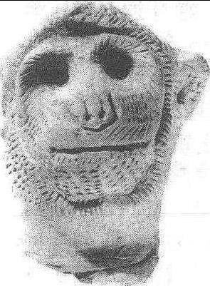 | 释义 | 陶塑猴头唐代。1902至1914年发现于新疆。高7.2、宽5厘米。猴头眉脊隆起,眉下各有一圆凹为目。凹壁中划有三圈圆纹,双目炯炯有神。鼻及吻部前突。鼻孔以L形线剔出。吻部划压一弧线而成。只塑一耳,整个面目呈向左注视状。通面用针剔刻出一个个密密麻麻的凹点,表现出猴子的茸茸髦发。现藏旅顺博物馆。