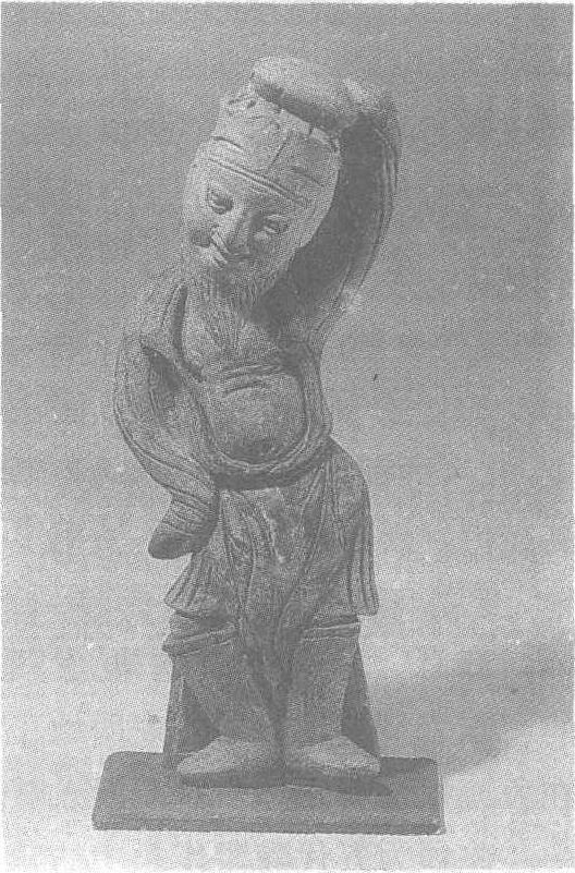| 释义 | 陶男舞俑五代南唐昪元七年(公元943年)。高48.5厘米。1950年江苏省江宁祖堂山李昪钦陵出土。北京中国历史博物馆藏。此俑戴幞头,穿翻领长衫,袒露胸腹,脚蹬长靴,左臂高抬,右手垫于腰部,身体呈S形,作舞蹈状。舞姿轻快,充满和谐的律动感。其面部表情热情欢快,刻画细腻。类似此俑反映官廷生活的作品还有一件,为两俑相对,成双共舞,现藏于江苏省南京博物院。