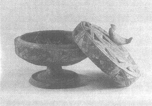 | 释义 | 陶薰炉西汉。高12.5厘米,口径13厘米。1972年湖南省长沙市马王堆1号汉墓出土。湖南省博物馆藏。薰炉为泥质灰陶制作,形制似一带盖的陶豆,底足较大,显得十分稳重。通体涂黑、黄两层颜色后加以彩绘,惜彩已剥落。炉盖镂空三角纹,炉身刻画三角纹及交叉线纹。盖纽做成小鸟形,古拙而灵巧,为薰炉增色不少。出土时炉内还放有茅香、高良姜、辛夷及藁本等香料。