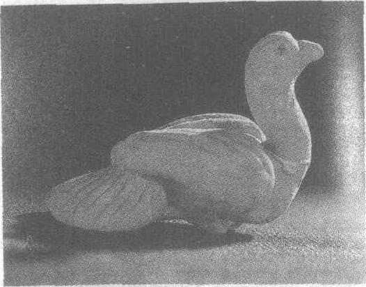 | 释义 | 陶鸽吴凤凰二年(公元273年)。高4.5厘米,长5.4厘米。江苏省南京市光华门赵士岗出土。江苏省南京博物院藏。陶鸽是该墓出土的一批小型明器中的一件。质地为红陶,其上的青釉多已脱落。陶鸽引颈昂首,双翅紧夹于身体,尾部曳地,神态安然,颇有灵性。陶鸽头部和颈部的线条流畅自然,双翼和尾部进行了适度的艺术夸张,使鸽子温顺而优雅的气质和羽翼的丰满生动地表现了出来,是一件颇令人喜爱的艺术小品。三国两晋时期鸽子的形象较为常见,除这种陶鸽,有些器物的盖钮亦塑成鸽形。