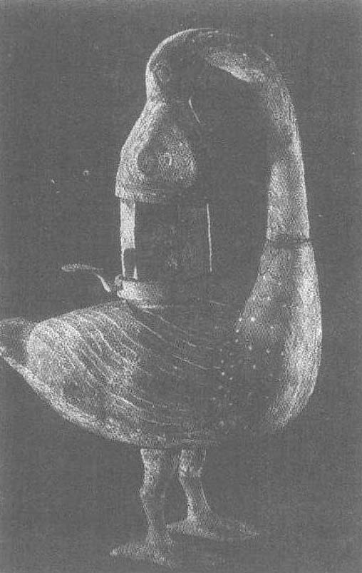 | 释义 | 雁鱼铜灯西汉。通高53厘米,长34.5厘米。1983年山西省朔县出土。北京中国历史博物馆藏。此灯整体作鸿雁回首衔鱼伫立状。雁额顶有冠,眼圆睁,颈修长,体宽肥,身两侧铸出羽翼,短尾下翘,双足并立,掌有蹼。雁喙张开衔一鱼,鱼身短肥,下接灯罩盖。雁冠绘红彩,雁、鱼通身施翠绿彩。并在雁、鱼及灯罩屏板上,用墨线勾出翎、鳞片和夔龙纹。雁鱼铜灯由雁首颈(连鱼)、雁体、灯盘、灯罩四部分套合而成。雁颈与雁体以子母口相接。鱼身及雁颈、体腔均中空相通。灯盘圆形,直壁,浅腹,内有两道直壁圈沿。一侧附灯柄,可控制灯盘转动。盘下有圈足,与雁背上的直壁圈沿以子母口套接。灯罩为两片弧形屏板,其上部插入鱼腹下的开口。下部插入灯盘内的直壁圈沿中,可左右转动开合,既能挡风,又可调节灯光的照度。灯火点燃时,烟雾通过鱼和雁颈导入雁体内,防止了油烟对室内空气的污染。雁鱼铜灯的四个部分又可自由拆装,便于擦洗。此器造型生动,工艺考究,是一件难得的艺术珍品。汉代的青铜灯具形式多样,铸造工艺精巧实用。造型多取祥瑞题材,如雁足灯、朱雀灯、牛灯、羊灯、连枝灯等。雁鱼铜灯是其中的一种。它的制作,也是人们追求富庶、向往幸福的思想反映,寄托了人们的美好愿望。