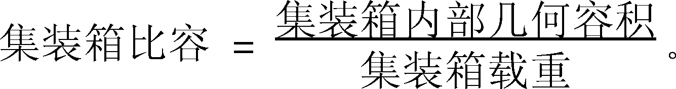 反映集装箱容积可利用程度的技术参数。集装箱内部几何容积与集装箱载重之比。此值大表明在同样载重量的情况下,可装载较大体积的货物,具有较大的使用范围。其计算公式为: