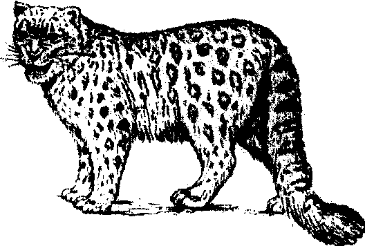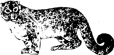 图 411 雪豹 雪豹ounce,snow leopardPanthera uncia Schre-ber,又称艾叶豹。哺乳纲,食肉目,猫科。分布于喜马拉雅山以北、天山、贺兰山等地。全身灰白色,颈背部的黑斑大而疏,似成5纵行排列,肩和前肢的上部黑斑成半环状,背部、体侧直到臀部背有较清晰的黑色环纹。胸、腹和四肢内侧亦具少量黑斑。前足5趾、后足4趾,趾端具角质化硬爪,略弯,尖端锋利,趾间、掌垫与趾间均具较浓而长的粗毛。栖息于海拔高2 500~5 000 m高山上,一般栖居在空旷多岩石的地方。性凶猛而机警。嗅觉、听觉都较敏锐。行动灵巧,善于跳跃。猎食时,常采取伏击或偷袭的方法,主要猎捕山羊、岩羊、盘羊高原动物,亦捕食一些兔、旱獭、鼠类、雪鸡、马鸡和虹雉等小型动物。怀孕期98~103天,每胎3~5仔。为中国一级保护动物。