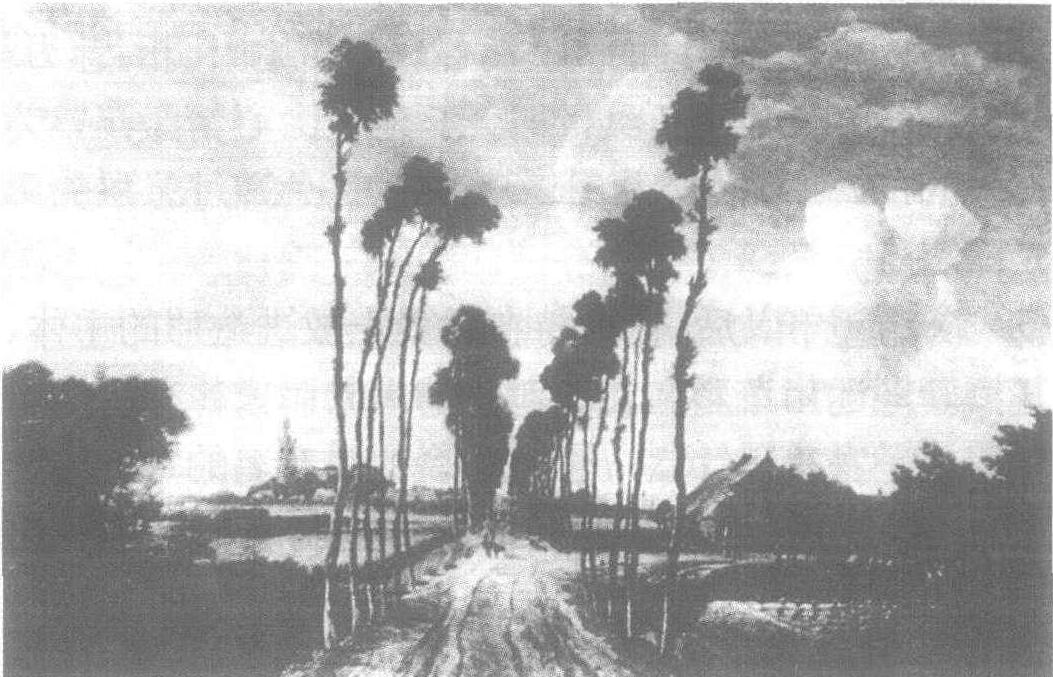 树间村道 霍贝玛 《远望哈勒姆》,雷斯达尔画过两幅,现都收藏在阿姆斯特丹。一幅大些,另一幅小些,小的是习作。原来,他每每作画,都是先在室外作好素描稿,然后在画室里最后加工完成的。 画中笼罩在一望无垠的田野上的是巨大的苍穹。雷斯达尔 一边将这穹隆的曲面平平地铺展开来,一边将投在广袤的平原上的阴影随之处处变化。他总记得那句话: 光与影绝不是静止的。他还在天空的表面微微涂上明暗,使其更有立体感。要言之,他是个致力于天空描写的人。 他将天空作为构图的重要一部分组织在画面中,从大地到天穹尽收眼底,或者说他是在眺望被大气所包围的景物。因而在视圈内的任何东西都不会漏掉,而且既保持细部又不致看不见全体。他很善于运用线条、色彩和构图等艺术手段,将自然中散在的东西统一起来,组织成一个整体。他想用自己画布的四个边框将自然的一角围起来,他的眼睛就像一部照相机的暗箱。然而他同时又在自己的思考之中将那一切都包容在内了。他将对象进行缩写,将光减弱,仅仅保持形态和色彩的正确比例关系。就是说,他始终以整体性为目标,并逐渐使画面变得丰满和强烈。上方较灰些,下方用茶色系和绿色系的色调描绘,直至额缘的四个角都涂满颜色。他的画远看昏暗而不清晰,近看则画中光芒四射。 关于雷斯达尔的生平我们所知甚少。只知他1630年出生在哈勒姆城,1650年移居繁荣 一时的阿姆斯特丹。他于1682年去世,葬在家乡。 雷斯达尔是个深沉、狐独的人。他 一生画了约500余幅风景画。不难看出,他后期的作品带有哀婉的性格,这也是荷兰开始出现危机的反映。当时的文人墨客,都喜欢做一个 “孤独的散步者”。他们逃避都市,涉足郊外,卖弄美词丽句,一心只是描述田园的魅力。当雷斯达尔面对地平线的时候,他也会心情激荡,为大地的广阔所诱惑,为云影所感动,为透过云层的阳光而忘掉一切。 在1650年以后,仍坚持在近景上放进造形的主体,并巧妙地运用色彩和光的对比的风景画家,有雷斯达尔的弟子霍贝玛(1638—1709)。他在有名的《树间村道》中,描绘了一条狭长的路和两侧并排的树木伸向很远的远方,人和房子都服从于越远越小,最后消失于地平线上的图法原理。在色彩上,从前景的暖色向远景的冷色渐渐过渡,是根据典型的空气透视法画成。总之,这幅画的细部是写实的,而在整体构思上又带有很强的幻想性,可以说是一幅秀丽而轻快的独特风景画吧。 |