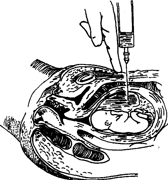 | 释义 | 雷穿中引术人工终止中期妊娠的手术叫中期引产术,一般用于终止孕16—26周的妊娠。在妊娠16周时胎盘已形成,胎儿生长发育身长达16厘米以上,骨骼已钙化变硬,胎儿头直径达4厘米以上。这时期用强行扩张宫颈的办法终止妊娠已不能使这么大的胎儿胎盘排出,必须诱发子宫发生规律宫缩,使宫口自然开大,将胎儿胎盘娩出,因此叫中期引产术。中期引产术易发生大出血、败血症、子宫破裂和凝血障碍等严重并发症,所以必须在有抢救条件的医院中施行。为了保护妇女的健康,当发生计划外妊娠时应在早期行负压吸引术,不要等到妊娠中期再终止。雷穿中引术是指用羊膜腔穿刺法向羊膜腔内注射雷伏奴尔终止中期妊娠的手术,是中引方法之一。雷伏奴尔又叫利凡诺(Rivanal)是黄色粉末,可溶於注射用水,是一种强力杀茵剂,注入羊水后可引起子宫收缩,并使胎儿在宫内死亡,最后达到流产。一般注药后约48小时流产,这种中引方法比较安全,副作用小,并发症少而且成功率高,约为95%—98%,是目前我国最常用的中期引产方法(见图4.4-2)。
