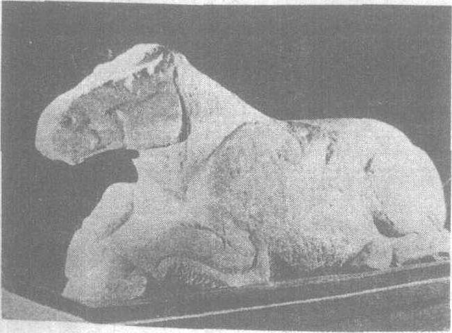 霍去病墓石刻之一 霍去病墓石刻西汉中期霍去病墓前大型石雕群像。霍去病(公元前140~前117)是汉武帝时抗击匈奴的名将,封骠骑大将军。元狩六年(公元前117年)死后,起冢于茂陵东北1000米处,形状象匈奴居地祁连山。冢上有竖石,冢前有石人、石马等石雕群像。遗存至今的墓前石刻尚有马踏匈奴、跃马、卧马、卧虎、野人食熊、怪兽食羊、卧猪、卧牛、石鱼等十六件。这些石刻都尽力保持石材的原型,以圆雕、浮雕和线刻而成,刀法极简,形态生动,是我国现存早期石雕群中体积最大的石刻艺术作品。现为全国重点文物保护单位。 霍去病墓石刻中国西汉石刻雕塑。位于陕西省兴平县汉武帝茂陵东北1km处。霍去病公元前140年生,公元前117年去世,是汉武帝时抗击匈奴的名将。墓前现存石刻16件,其中“卧虎”长2.4m,宽0.84m;“卧马”高1.14m,长2.6m;“马踏匈奴”高1.68m,长1.9m;“卧象”高0.58m,长1.89m;“跃马”高1.5m,长2.4m;“卧牛”长2.6m,宽1.6m;“野人搏熊”高2.27m,宽1.72m;“怪兽食羊”长2.74m,宽2.15m。 |