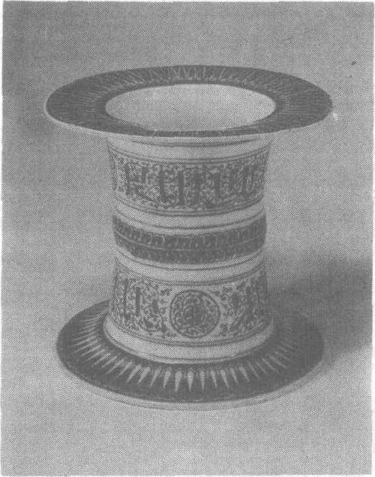| 释义 | 青花无挡阿拉伯文瓷尊明永乐。高16.5厘米,口径17.5厘米。天津市艺术博物馆藏。无挡尊上下直通,呈筒状,中空,口沿和底部均出平沿,上下口沿绘莲瓣纹各一周。器身中部有一道凸棱,上饰两层莲瓣,以此为分界线,上下各绘一组勾连花卉,并书阿拉伯文字。青花色泽深浓鲜艳,纹饰有晕散现象,浓重处聚成黑青色。此尊的造型及纹饰均受伊斯兰教的影响,具有浓厚的异国情调。永乐青花见“青花云龙纹瓷扁壶”条目。