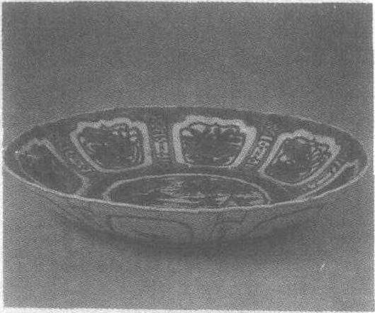 | 释义 | 青花花鸟纹菱口瓷盘明万历三十一年(公元1603年)。高6.6厘米,口径31.3厘米。1979年江西省南城明益宣王朱翊鈏墓出土。江西省博物馆藏。此盘菱花口,弧形壁,圈足。釉面细润,青花色泽蓝中泛灰。盘内外均绘纹饰:内壁绘八个开光,开光内有菊花、芭蕉、牡丹、浮萍;盘心为锦地开光,以云、雀、草、竹构成图案;盘外壁绘八瓣莲纹,并以八柱相隔。此盘纹饰内密外疏,设计合理,用笔圆润,不失为一件优秀作品。