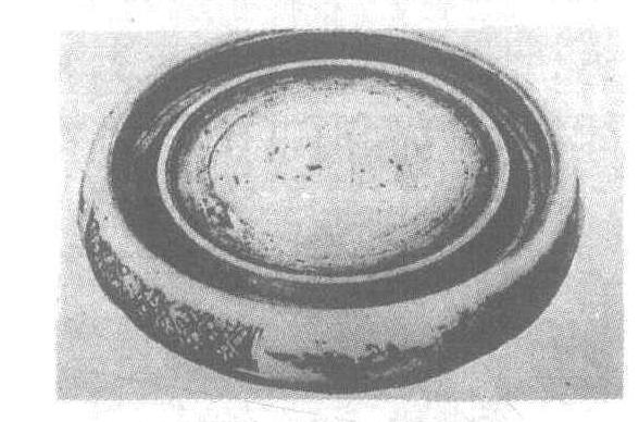 清。直径18.1厘米,高3.3厘米。天津市艺术博物馆藏。用细密瓷土烧制而成,质地精坚细润;砚作圆形,中间圆形砚堂无釉,周凹下环水为砚池,周侧施褐色釉,饰几何纹及隐现的仿佛草藻的青花纹饰。砚无足,“辟雍”是古代太学建筑,四面环水,圆如璧,因瓷砚与其意相仿,故此得名。