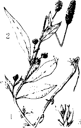 青葙 1.植株 2. 叶 3. 花 青葙别名野鸡冠。一年生草本,高0.3—1米。茎直立,有分枝,绿色或红色。叶片矩圆状披针形,披针形或披针状条形,少数卵状矩圆形,绿色常带红色。花多数,密生。种子凸透镜状肾形。花期5—8月,果期6—10月。全疆各地均产,野生或栽培。药用种子,可清热明目。全株可作饲料。 |