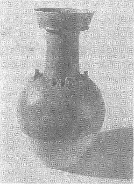 | 释义 | 青釉六系盘口瓷壶隋。高53.5厘米,口径19.4厘米。1956年湖北省武昌市周家大湾出土。北京中国历史博物馆藏。湖北武昌地区出土的隋瓷多为生活用具,此为其中的一种。隋代的盘口壶与前期的相比,有由矮小发展为高大的趋势。此壶盘口深而外撇,颈部瘦长,溜肩、腹椭圆,平底,肩贴六枚桥形系,腹饰弦纹、葵瓣纹各两道。釉色青绿,施釉仅至腹中部,颇具特色。胎质坚硬,胎色灰白,火候较高,为研究隋代南方青瓷提供了科学资料。