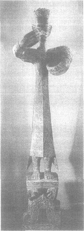 | 释义 | 青铜人立像继辽宁东山嘴、牛河梁五千多年前的人体陶塑和女神头像的发现之后,四川省广汉市三星堆古遗址又有惊人的发现,其中最重要的有与真人等高的大型青铜立像以及青铜人头像、人面像、兽面像等近百件青铜雕塑。这批铜雕数量之多、水平之高、年代之久,为国内历次发掘所仅见。它们的出土如同秦始皇兵马俑的发现 一样,将填补中国雕塑史和世界雕塑史的空白。英国学者戴维·基斯于1987年8月13日在英国《独立报》上撰文,称 “广汉的发现可能是一次出土金属文物最多的发现,它们的发现可能会使人们对东方艺术重新评价” 。 青铜人立像 这件青铜人立像是1986年在三星堆二号祭祀坑出土的,为该遗址出土铜像之冠。像高172厘米,连同底座通高262厘米,重约500公斤,是迄今国内发现的最大青铜人像。这位身着左衽长袍、头戴高冠、身体修长的人物,气宇轩昂,广目、直鼻、方颐、大耳。两只环圈状巨手 一高一低,成环抱姿势,高高地立于饰有兽面纹的方座之上。有学者猜想,这或许是一种特定的礼仪姿势。人物两只圜状巨手执琮,有“通天地”的木柱从琮孔中穿过,因时间久远,木柱已腐,荡然无存。这种推测恐不无道理。古代作为礼器的玉琮,外方内圆,方象征地,圆象征天。玉琮中间穿孔,表示天地相通,穿孔的木棍就是通天柱。手执天地柱有沟通天地 、主宰世界之意。联系铜人那肃穆、庄严的表情,不禁使人作出种种推断: 或许他是一位神通广大的巫师;或许是一位至高无上的王者;或许是巫师、王者—— 一身二任的蜀王,在方形祭坛上率民礼拜天地,抑或祭奠先祖?不管怎样,这件体量巨大的铜人,有着不同凡人的仪表和气势,其高大的形体,静穆严肃的表情,都给人 一种不可名状的崇高感和神秘感。据考古工作者推断,三星堆祭祀坑是商代后期蜀地 一处祭祀遗址,距今三千多年。出土的青铜雕塑和中原同期的商文化一样,也笼罩在一片肃杀、狞厉的气氛之中,给人 一种难以解脱的压抑感。 |