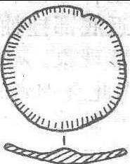 | 释义 | 青铜扣青铜时代生活用具。1949年在吉林省吉林市郊区欢喜乡骚达沟山顶大墓出土,计11件。皆藏吉林省博物馆。青铜铸造,大小不一。一种形制平视呈椭圆形,边缘有铸造时贴连痕迹,表面突起呈圆弧状,背面凹下有一小钮(已残损),形体很小,直径1.1、厚0.3厘米(见图);另一种,平视呈正圆形,表面突起,周边有辐射线状花纹带一圈,背面凹下有一小钮,形体较大,直径3.2、厚0.15厘米 (见图)。