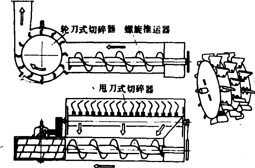 甩刀双切型青饲料收获机 通用型青饲料收获机 可收获各种青饲料和青贮饲料。有牵引式、悬挂式和自走式三种。它有一个机身,可按收割对象分别配用普通割台、玉米割台和草条捡拾台:普通割台用来收获大麦、燕麦等细茎秆作物。茎秆被往复式或旋转式切割器割下,经螺旋推运器送到机身的喂入机构;玉米割台用来收获青贮玉米,粗茎秆被切割器割下后,经夹持器送到机身的喂入机构;草条捡拾台用来制作低水分青贮,它将经过晾晒的苜蓿等作物拾起,送到机身的喂入机构。机身由喂入机构、切碎器及抛送机构组成。喂入机构由一对(或两对)上、下喂入辊组成,将茎秆压紧并输送到切碎器。切碎器有轮刀式和滚刀式两种。轮刀式切碎器上直接安装抛送叶板,能在切碎的同时将碎段抛出。滚刀式切碎器视刀片形状的不同又分直抛式和切碎吹送式两种。直抛式使用凹形刀片或与滚筒切面成较大倾角的平板形刀片,刀片兼有抛送作用。凹形刀片抛送效率高,平板形刀片则刚性好,容易制造,成本低。切碎吹送式使用螺旋形刀片和“J”形刀片。饲料被切碎后,由螺旋推运器送到风机,将碎段吹送出去,螺旋形刀制造困难,“J”形刀刚性好,效率高。青饲料收获机上均配备相应的磨刀机构。有的青饲料收获机在切碎器下方装有磨碎谷粒的齿条形粉碎板。中国生产的青饲料收获机是牵引式的,配备的玉米割台,有单行与双行两种,其每秒喂入量相应是5千克与10千克,适用的行距为50~70厘米,其配套动力为37~60千瓦。 |