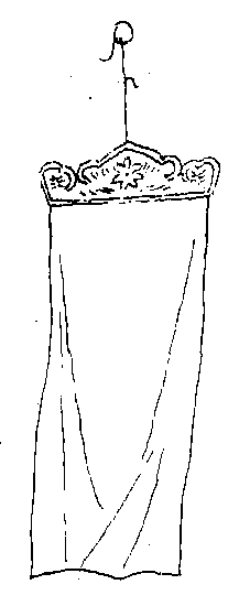 在一绘有黄色图案的横木下,挂一块红布,示意此店出售鞋面布。