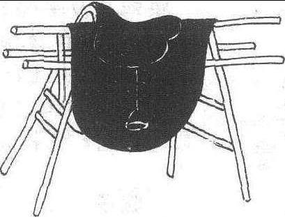 在木架上放一副马鞍子,表示店内出售的产品,属实物幌。过去流行东北各地。