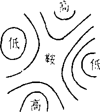 两个高压和两个低压十字形交叉排列组成的气压场。因其在空间等压面上气压场分布形似马鞍,故名。鞍型区内气压梯度小,风速小风向多变。