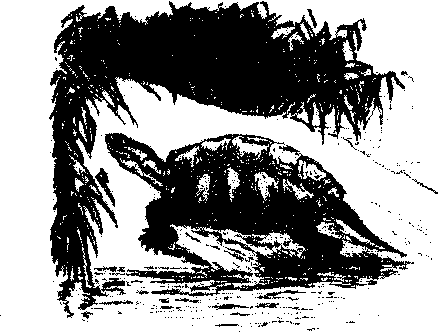 图301 乌龟 乌龟wugui爬行类动物,又名金龟、草龟。半水栖,平时生活在河流、湖泊里,经常浮出水面呼吸空气,有时也爬到岸上活动。在岸上产卵,埋在沙里,依靠温暖的阳光,自然孵出幼龟。龟的身体比较扁,头小,尾短,身体腹背部都有硬甲,也叫龟壳,上面有暗褐色斑纹,背部黑褐色,有三条纵向隆起;头、颈侧面有黄色线状斑纹;四肢略扁平,指、趾间有蹼,有利于游泳划水;龟的头、尾和四肢表面长有鳞片,遇敌害时都可缩进龟壳内。龟没有牙齿,长角质嘴,指、趾端有爪,主要以植物及小鱼虾为食。龟可用作实验动物,肉营养丰富,可供食用。没有煮过的龟甲是著名的中药,叫龟板,对人体有补益作用。 乌龟Wugui又叫草龟、金龟,龟鳖目龟科的一种常见动物,学名为Chinemys reevesii。体型不大,体长10—18厘米,身体背面黑色或棕色,腹面颜色较淡。具有背甲和腹甲,十分坚硬,是一种被动的保护装置,在遇到敌害时,可将头、颈、四肢和尾都缩入甲壳之内,使天敌无从下口。在背甲上具有三条纵行的棱嵴。头顶前面比较光滑,后面的皮肤呈细颗粒状,尾细而短。四肢扁平,前后肢的趾间均具蹼。一般雄龟个体较小,壳呈黑色,尾较长;雌龟个体较大,壳为棕黄色,尾较短。大多生活于河流、池塘或稻田之中,有时也爬到岸上活动。杂食性,以鱼、虾和植物为食。耐饥能力很强,可数月不食。每到冬季便到水底淤泥里边冬眠。产卵期为每年的5—8月份,每次产卵5—7枚,一年可产3—4次卵。卵置于事先挖好的洞穴之中,产卵完毕,雌龟再扒土将卵盖上,并将土用腹甲压实。卵在沙土中孵化,孵化期一般为50—80天。