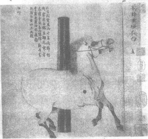 照夜白图 韩幹 韩幹唐代画家。生年不详,公元780年去世。京兆(治今陕西西安)人。擅画肖像、人物、鬼神、花竹,尤擅画马,重写生。742~755年间,官至太府寺丞。作有《照夜白图》卷(30.8cm×33.5cm),《牧马图》册页(27.5cm×34.1cm)。画迹52件。 |