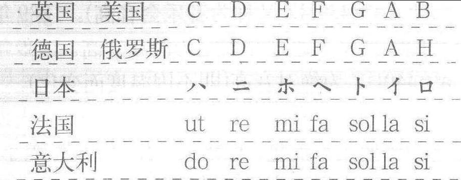 音名Yinming对音乐中使用的乐音所定的名称。由于世界各国历史、文化、文字及音乐中使用音律的不同,所用音名也各异。近代较多采用英、美等国的字母体系。如,C、D、E、F、G、A、B (德国为H),升降各音名可使用升降记号 (见变音记号) 如#F、bB等。中国古代十二律的名称亦为音名。各律的名称为:黄钟、大吕、太簇、夹钟、姑洗、仲吕、蕤宾、林钟、夷则、南吕、无射、应钟。 音名指7个基本音级的名称,它们是有固定音高的(在五线谱和键盘上的位置见上例)。7个基本音级不断循环重复,构成整个乐音体系。各国所用的音名各异,大多用字母体系,亦有用唱名体系。见下表: