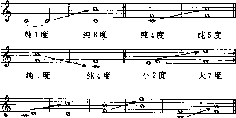 音程转位前后度数的总和为九度,用9减原位音程度数即为转位音程度数。如一度转位后为八度;二度转位后为七度; 四度转位后为五度等。音程转位后,其音响的协和性不变,协和音程转位后仍为协和音程;不协和音程转位后仍为不协和音程。音程转位后,其音程性质的变化情况为:纯音程转位后仍为纯音程,如纯四度转位后为纯五度;大、小音程的性质互变,增、减音程的性质也互变,如小六度转位后为大三度;增四度转位后为减五度; 倍增音程转位后为倍减音程,反之亦然。 复音程转位时,需将冠音和根音同时移动,即将冠音移低八度的同时将根音移高八度,其音程转位前后的复数总和为16。音程转位后的性质变化和协和程度变化的情况和单音程的转位相同。如复纯五度 (即纯12度) 转位后的度数为: 16-12=4度,其性质仍为纯音程。增八度的转位情况较复杂,因增八度音数已超过单音程的最大音数(6个全音),故应将其视为复音程,转位后应是减八度 (度数为16-8=8,性质由增转变为减),而不是减同度 (减同度是不能成立的)。 |