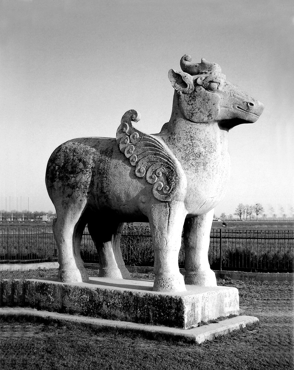| 释义 | 顺陵天禄shunling tianlu唐代。武周天授元年(690)前后刻。位于咸阳市渭城区底张镇陈家村南,现立外城神道两侧。1对。高415厘米,长420厘米,宽190厘米。天禄为瑞兽。其形似鹿,一名“天鹿”。又因头长一角,俗称“独角兽”,石刻天禄昂首端立,肩部和前腿两侧相结处有双翅,刻卷纹,长尾拖地。《汉书·司马相如传》称此兽为獬豸。唐陵多有此类石刻,而顺陵所刻形体最大。杨氏死于唐高宗咸亨元年(670),初赠晋国夫人,葬以王礼。武后即皇帝位后,于光宅元年(684)追封其母为魏王妃。永昌元年(689),又追尊其母为忠孝太后,改墓名为明义陵(或称顺义陵),天授元年(690)再追封其母为孝明高皇后,改明义陵为顺陵。