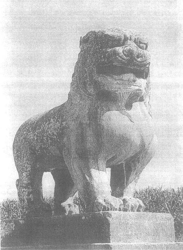 顺陵石狮 顺陵位于咸阳东北18公里处,坟丘高出地面12米余。四周原有双重城垣,设东西南北四门,已毁坍。南门之外为神道,两侧恭立虔诚的侍臣和威风凛凛的雄狮、天禄(各 一对)。其他三面门外,也有巨兽守护,北门立狮、鞍马各一对,东西二门蹲狮各 一对。这些瑞兽都是以整块巨石雕凿的大型石雕,陵南 一对天禄高达4.15米,数里之外即可望见。这件石狮在顺陵南门神道之左,与右侧石狮相向而立。通高3.05米,长3.45米。石狮于方形基座之上。挺胸伫立,巨头高昂、眉宇紧蹙、目光威严,张血盆大口发出雷鸣般吼声。中国雕塑向来讲究以势夺人,作为大型陵墓雕刻,气势的创造尤为重要,有势有气则生,无势无气则亡。这件石狮以大如磐石的体量、安若泰山的站姿、气冲霄汉的魂魄,造成惊天地、泣鬼神的气势,有汉代雕刻之雄浑,六朝雕刻之劲健,充满了一种更深沉内在的力量,为中国陵墓雕刻最优秀的作品。 顺陵石狮shunling shishi唐代。位于咸阳市渭城区底张镇陈家村南顺陵前。武周天授元年(690)前后刻。圆雕。雄、雌各一。其中雄狮最为威武,高305厘米,长345厘米,宽100厘米。躯体硕大,头披卷毛,突眼隆鼻,丰颐利齿,阔口半开胸肌健壮,迈步前趋,巍然屹立,气势雄强,为唐代各陵中最大而具有代表性石刻之一。