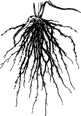 | 释义 | 须根系xugenxi主根不发达,早期停止生长或枯萎,由茎基部节上产生大量的不定根,这些不定根继续发育,形成分枝,整个根系形如须状,这种根系称为须根系。一般的单子叶植物,如大麦、小麦、水稻、燕麦、蒜、葱等,其根系均属须根系。须根系入土较直根系浅。 须根系fibrous root system主根不发达或早期停止生长,由茎基生出许多不定根及其侧根,外观呈须状的一类根系。单子叶植物的根系为此类型,如水稻、小麦、葱等,少数双子叶植物(如毛茛、石龙芮、车前等)也形成须根系。