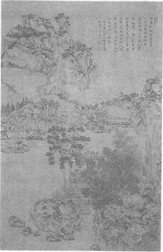 | 释义 | 顾符稹山水图轴清。顾符稹绘。纸本设色。纵121.5厘米,横7 9.8厘米。北京故宫博物院藏。顾符稹(公元1635年—?),一作符祯,字瑟如,一字松巢,号小痴,江苏兴化人。能诗善画,山水人物学唐代著名山水画家李昭道,工细入毫发。贫困时以卖画自给,故临摹古画很多。工书法。卒年不详。康熙五十五年(公元1716年)顾氏83岁还尚在。此图画远山高耸,峰峦层叠,悬崖峭壁,山顶平坡处,林木苍郁,掩映寺院一座,山腰间云雾弥漫,泉流一波三折跌入山下湖中。山下,田畦如网,农夫耕忙,湖中舟楫穿梭捕鱼繁忙,远桥飞架,村落隐见。近处山崖下的小径上走来挑夫、行旅,绿松高拔劲硬,丛菊、芙蓉花盛开,在树荫掩映下,房屋楼舍隐现,里面有文人持卷读书,湖边还有一侍童正准备汲水,颇有山野生活的情趣。设色淡雅,清丽秀逸,用笔严谨工细,画风清旷潇洒,山石用线勾出轮廓,再用浓墨提醒。右上自题七绝二首,署款“庚辰仲秋,松崖老人顾符稹画并题,时年六十又七。”钤<顾符稹>等二印。庚辰为清康熙三十九年(公元1700年)。