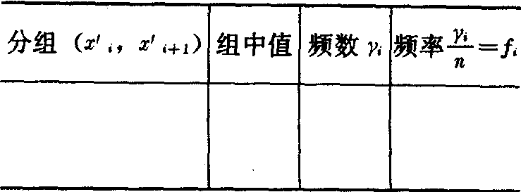 ❹作频率直方图 在X-O-Y直角坐标系中,以X轴上各区间Δx′i= (x′i,x′i+1) (i=1,2,…,l-1)为底,以频率与组距之比yi=fi/(x′i+1-x′i)为第i个长方形的高 (即纵坐标)画一排竖直的长方形,即所谓频率分布直方图,因为每个竖直的长方形面积恰好近似地代表了X取值落入“底边”的概率,所以该图大致地描述了X的概率分布状况。
