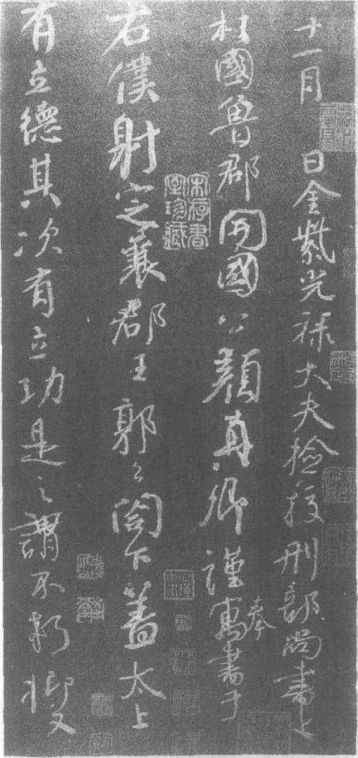 | 释义 | 颜真卿行草书争座位稿唐。广德二年(公元764年)十一月书,传真迹有七纸,64行,宋时归长安安师文,安氏于此刻石,石现藏陕西省西安碑林。颜真卿(见《颜真卿行草书祭侄文稿》条目)书。《争座位稿》是颜真卿致定襄王仆射郭英书信稿,内容是与邪恶势力作斗争,讨论文武百官在朝廷宴会上的座位次序问题,故又称《论座位帖》、《与郭仆射帖》。《争座位帖》、《告伯父文稿》、《祭侄文稿》被世称为“颜书三稿”。对于此书人们评价很多,有人将《争座位帖》同王羲之《兰亭序》称为“世上双璧”。明项穆《书法雅言》云:“行草如《争座位帖》、《祭侄帖》,又舒和遒劲,丰丽超动,上拟逸少,下追伯施,固出欧、李辈也。”清蒋衡《拙存堂题跋》云:“颜公《论座书》,意法兼到,所谓从心不逾矩,即论书法已直逼二王,况忠义大节明并日月。此书尤理正辞严,雷霆斧钺,凛然不可犯。”米芾称云:“《争座位帖》有篆籀气,为颜书第一。字相连属,诡异飞动,得于意外。”有《京兆安师文本》、《吴中复刻本》、《米芾临本》、《关中本》、《越州石氏本》。曾刻入《余清斋》、《停云馆》、《戏鸿堂》等丛帖。北京故宫博物院藏此碑宋拓本。上海艺苑真赏社有影印本。陕西人民美术出版社《西安碑林书法艺术》、日本《书道全集》有著录。