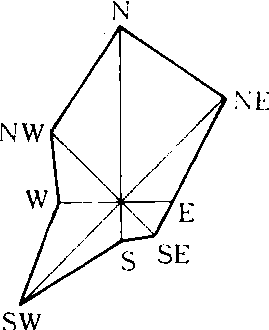 风玫瑰 风玫瑰图表明风象资料,为风向、风速、频率的特征图案。在8个或16个罗盘方位上,按某一地区多年统计的平均风向与风速的重现率,以罗盘中心为零点在各方向轴上,按比例标出绘出的图形。在罗盘上可同时绘出风向频率玫瑰与风速频率玫瑰。 |