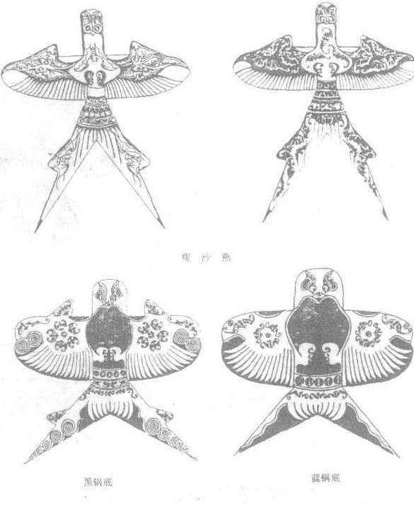 金鱼风筝 风筝古代也称鹞子、纸鸢。是用竹、纸、绢等材料扎糊,可系线乘风放飞的民间工艺品,主要作为游戏品,也用作壁挂陈设。风筝的工艺技巧分扎、糊、绘、放四项。扎,是根据图样,用竹条捆扎风筝的骨架和轮廓。糊,将纸或绢糊在骨架上。绘,是在平面上彩绘图案,表现细部特征,色彩宜鲜艳醒目,有的风筝是先绘后糊。放,即系线放飞风筝。常见的风筝为单片,造型有蝴蝶、飞燕、蝙蝠、蜻蜓、蝉、鹰等,还有成串的蜈蚣、龙形风筝。风筝有硬翅、软翅之别。硬翅风筝的两翼由上下两根横竹条构成,软翅风筝则只在上面有一 根竹条。风筝还可配上发声、发光、传送装置,使形、色、声、光俱备,增强放飞的趣味性。风筝的著名产地有北京、天津、山东潍坊和江苏南通。