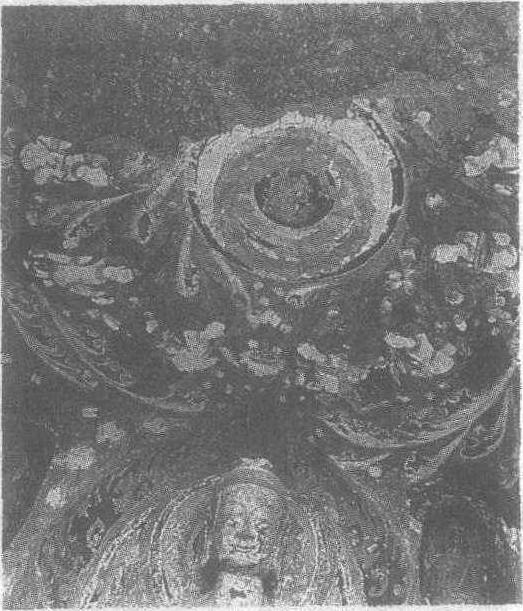 飞天像壁画西夏。甘肃省玉门昌马石窟下窖2窟窟顶南侧壁画。画面有飞天一对,头戴花冠,面相丰满,上身裸露,耳环、项圈、臂钏、手镯俱全。下身围长裙,体态窈窕,在空中自由地翱翔。风吹长裙裹体,衣带和宝缯高高飘起,动感极强。线描婉转娴熟,赋彩鲜艳,人物造型潇洒,使整个画面生机勃勃,是这个时代佛教壁画中的优秀之作。
