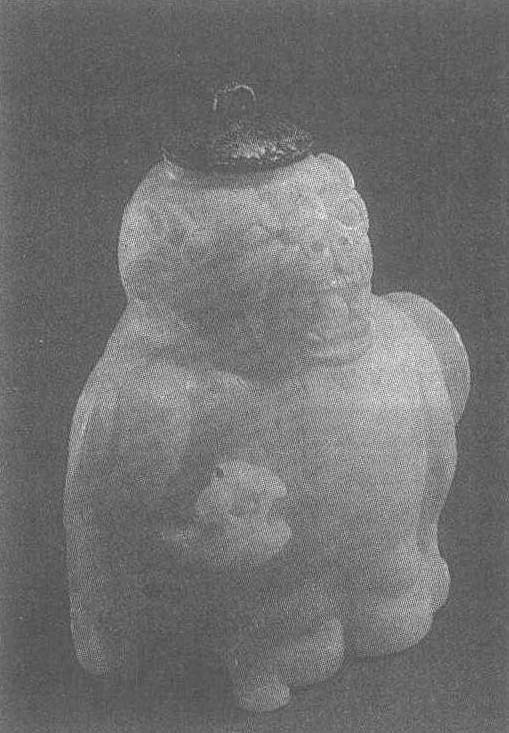 | 释义 | 飞熊玉水滴东汉。高7.7厘米,宽6厘米。1984年江苏省扬州邗江县甘泉出土。江苏省扬州博物馆藏。水滴是用于储水的文房用具,在研墨时使用。此水滴为新疆和田白玉所制,熊形呈蹲坐状,口大张似在吼叫,形象稚拙生动。熊一爪捧灵芝草,具有拟人化风格;头顶挖一圆洞以便注水,并配一银盖。此飞熊水滴刀工圆润熟练,腮部、胸部、爪部有阴刻线对形体的圆雕加以补充,但并不是完全写实的熊形,其肩后两侧有浮雕的双翅,体现了东汉玉器制作浪漫豪放的艺术风格,是一件颇具艺术感染力的作品。