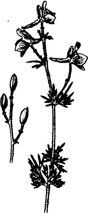 | 释义 | 飞燕草rocket larkspurConsolida ajacis,别名千鸟草。毛茛科飞燕草属一二年生草本植物。株高30~60cm,茎直立,上部疏生分枝,茎叶疏被柔毛。叶互生,数回掌状深裂至全裂,裂片条形,茎生叶无柄,基生叶具长柄。总状花序顶生,花径约2.5cm,萼片5,花瓣状,上面一枚长距后伸而上举。花瓣2轮,合生,多与萼片同色。花色有堇蓝、紫、红、粉白等。花期5~6月。蓇葖果,种子千粒重1.88g。有高、矮及重瓣等园艺品种。原产南欧,各地广为栽培。较耐寒,喜高燥,忌积涝,宜深厚肥沃的砂质壤土,需日照充足、通风良好的凉爽环境。用播种法繁殖,发芽适温15℃左右,播种时土温不宜超过20℃,15天萌发。飞燕草为直根性植物,须根少,宜直播,不耐移植。可秋播于冷床越冬,春暖定植,或早春露地直播。果熟期不一致,熟后自然开裂,散出种子,故应及时采收。飞燕草植株挺拔,叶纤细清秀,花序大,着花繁密,花色绚丽,为花境及切花的良好材料。根及种子可入药。