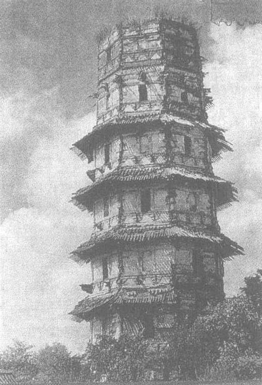| 释义 | 飞英塔位于浙江省湖州市内。创建于唐代,重修于宋代,由内外塔组成。内塔为石砌,八面五层,残高14.55米。塔身遍刻纹饰,有仰覆莲、缠枝花卉、佛像和狮子等,形态各异,状极生动。塔身设平座,檐子。塔檐的椽子、滴水、脊兽皆雕刻得十分精致。外塔为砖木结构,八角七层,塔顶已毁,残高36米。塔每层均有塔檐和平座,并以斗拱支跳。这种塔内建塔的实例在我国是独一无二的。飞英塔为全国重点文物保护单位。