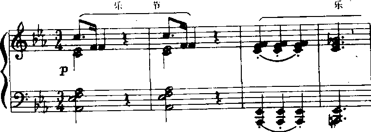 音乐的“语汇”,乐句中可分析的较小单位。又称乐汇。能表达一定的思想感情和风格特点。有时歌词的词组与乐节相一致。如贝多芬《钢琴奏鸣曲》OP. 31. No3 (参见乐句条):