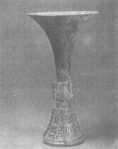 饕餮纹铜瓿商。口径15.2厘米,高17.5厘米。台北故宫博物院藏。瓿是一种盛酒器,口外张,短颈,丰肩,鼓腹,圈足。颈部纹饰朴素,仅有弦纹二道。肩部饰夔纹,腹饰饕餮纹,足饰雷纹。全器稳重端庄,风格深沉。